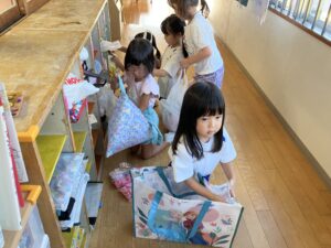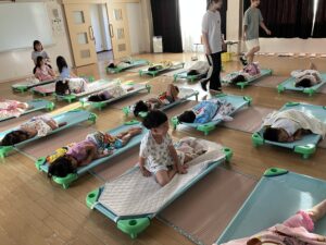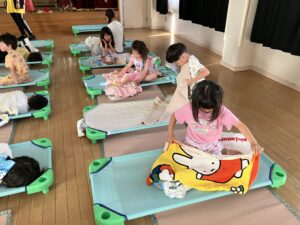 起床後は先生に手伝ってもらいながらも自分達で布団を片付けます⭐︎