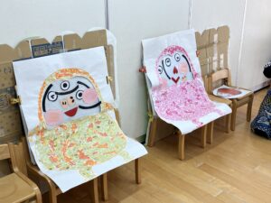 クレヨンで書いたり、シールをペタペタして羽子板製作をしましたよ!