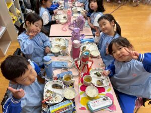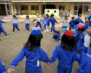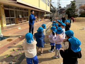 自分たちで作った鬼の帽子を被って「むっくり鬼さん」というゲーム遊びもしました!👹
