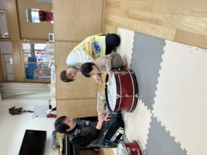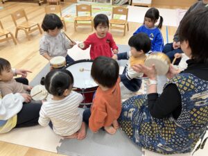 0歳児クラスのお友だちも大きな太鼓に挑戦!🔥