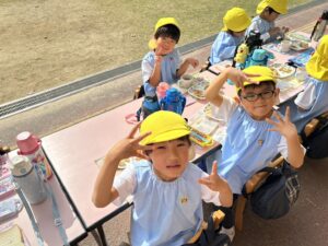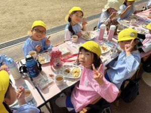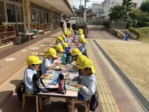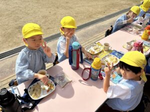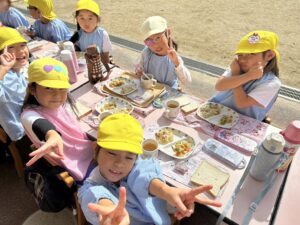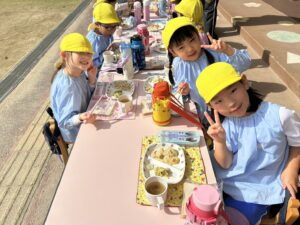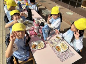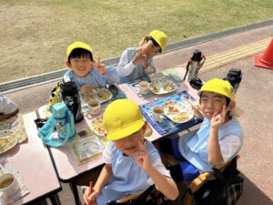 お外で給食を食べました♪