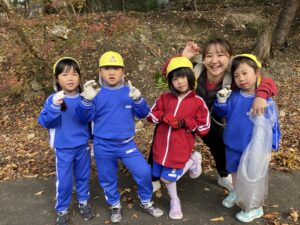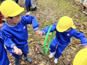 みんなで落ち葉やどんぐりを拾ったり、散策しました♪