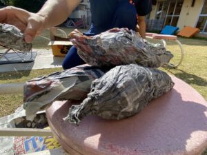 園長先生と井上先生が園庭で焼き芋作り♪