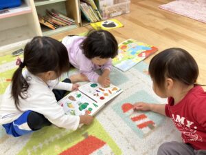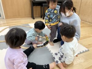12月8日(月)0,1歳児クラスの様子と4歳児羽子板遊び♪
