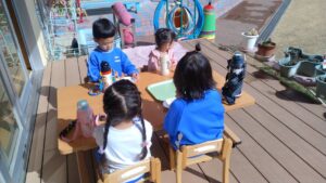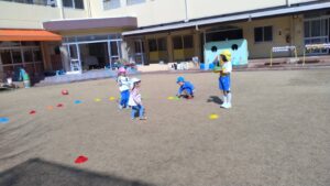 「なかあてしよー!」と自分たちでマーカーを置いていました!