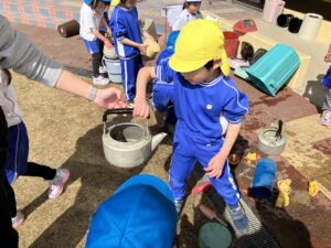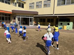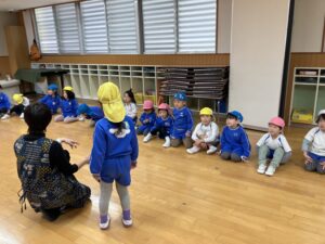 お外遊びの後は3学年みんなでわらべうた遊び!