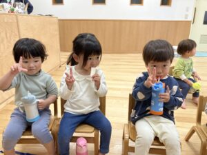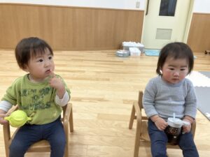 おやつタイムの乳児さんです♪