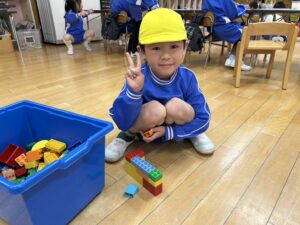 赤チームさんも体操までの時間で塗り絵やブロックで遊んでいます♪