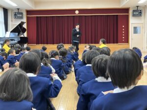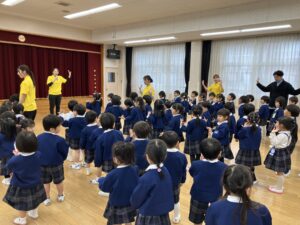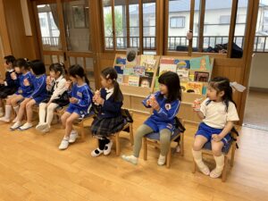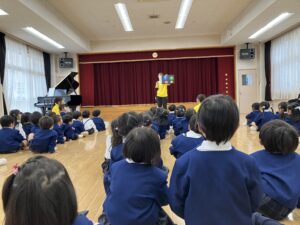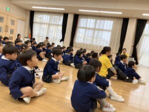 幼児クラスのお友達がみんなホールに集まりました。