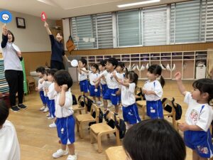 5月13日(火)2歳児クラスの様子とお祝いのボールをもらったよ!