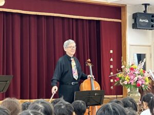 幼稚園創立の日からずっと園にある、足踏みオルガンも演奏に参加♪