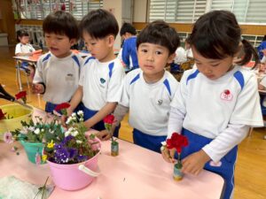 5月9日(金)幼児クラスフラワーアレンジメントの様子♪