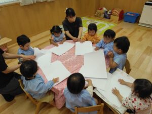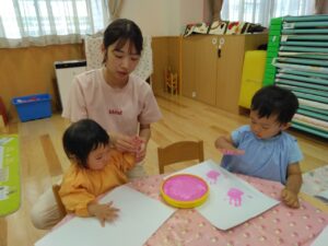 絵の具でペタペタ、楽しかったね(*^^*)♪