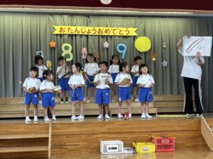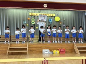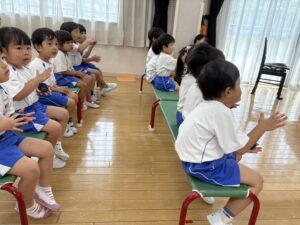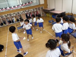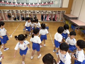ホールでつきぐみさん、さくらぐみさんと一緒にわらべうた遊び!